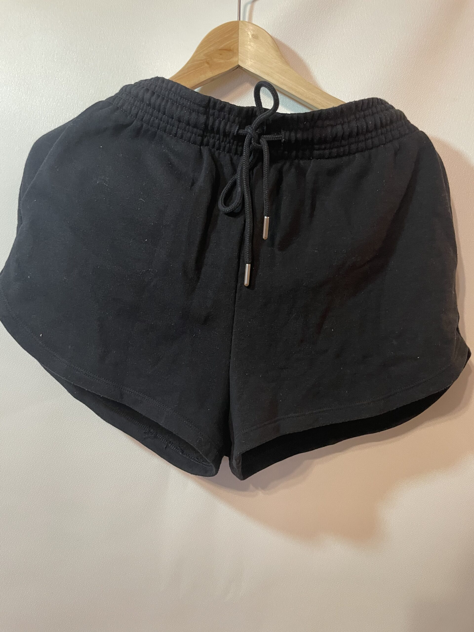 H&M Basics melni šorti ar elastīgu jostu un aukliņu. Ērti, viegli kopjami un piemēroti ikdienas vai sporta aktivitātēm.