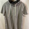 Moderns un ērts pelēks T-krekls ar unikālu augsto apkakli, kas atgādina kapuci. Divkrāsu dizains piešķir šim kreklam stilīgu un atšķirīgu izskatu. Ideāli piemērots brīvā laika pavadīšanai vai kā modīgs ikdienas apģērbs.