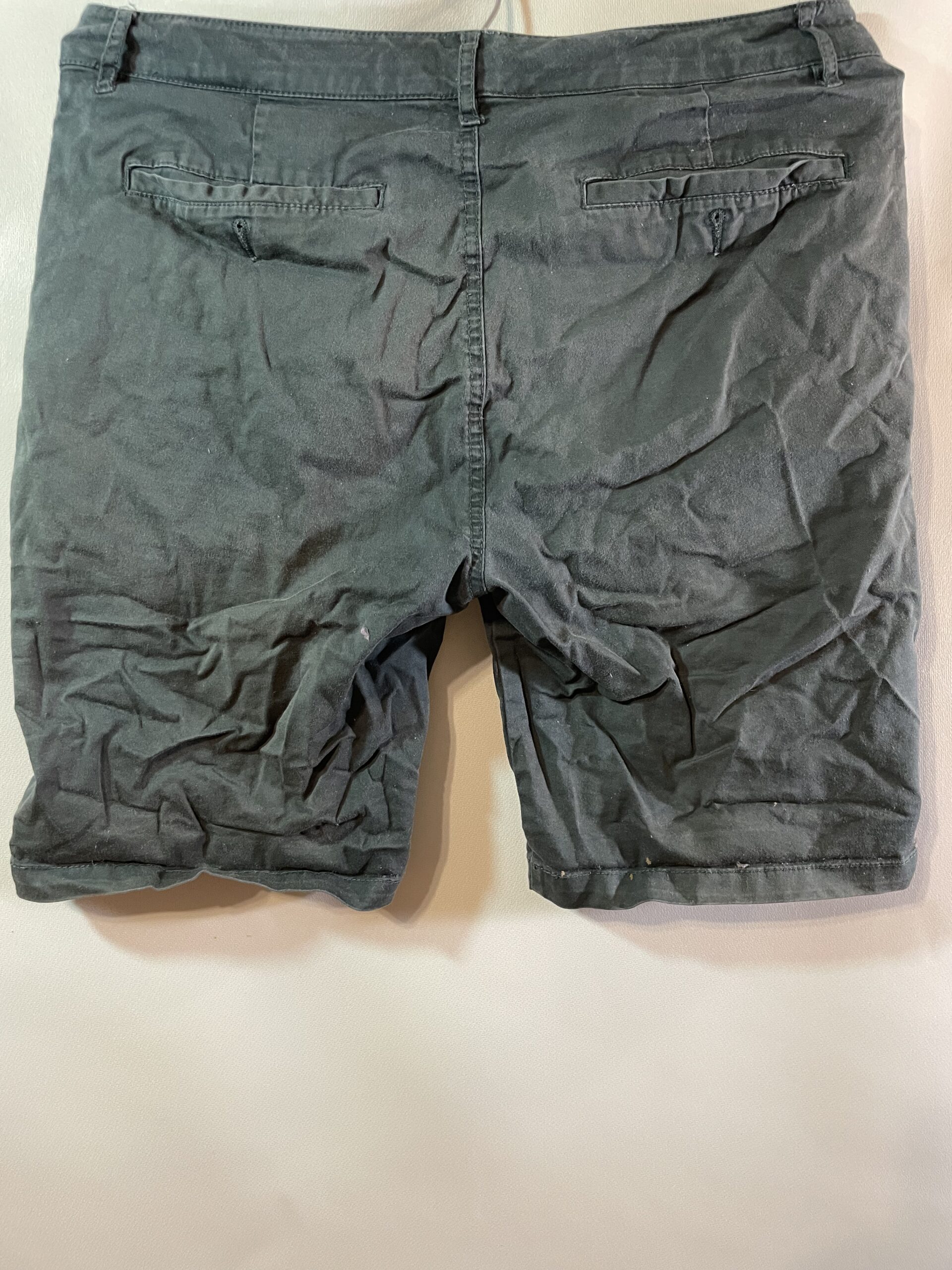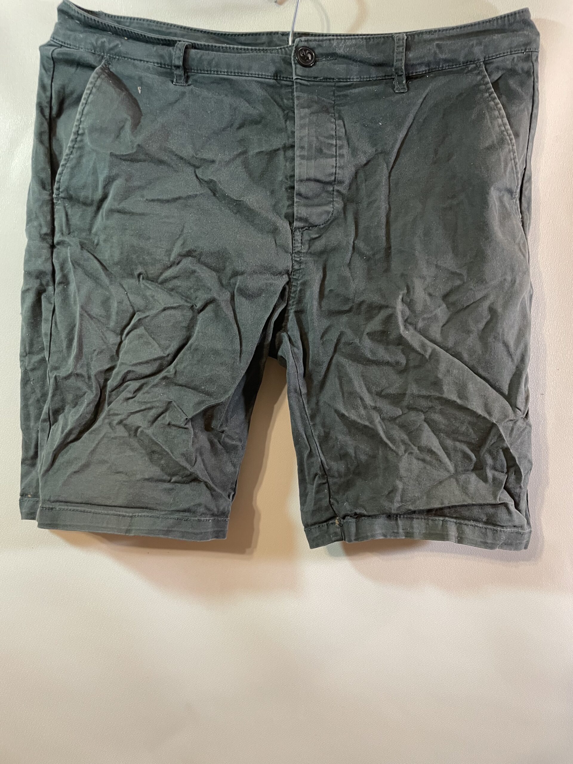 Šie tumši pelēkie chino šorti ir stilīgs un praktisks apģērbs vīriešu garderobē, īpaši vasaras sezonai. Izgatavoti no viegla, elpojoša materiāla – visdrīzāk kokvilnas ar nelielu elastāna piejaukumu, kas nodrošina kustību brīvību un komfortu visas dienas garumā.Šortiem ir klasiska aizdare ar pogu un rāvējslēdzēju, divas sānu kabatas un aizmugures kabatas ar atloku. Krāsa – tumši pelēka ar mazgātu efektu, kas šortiem piešķir nedaudz nēsātu, bet mūsdienīgu izskatu. Redzami saburzījumi no glabāšanas, bet nav būtisku defektu. Lieliska izvēle ikdienas lietošanai – gan pastaigām, gan neformāliem izbraucieniem.