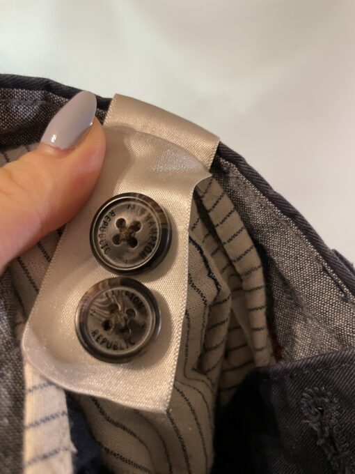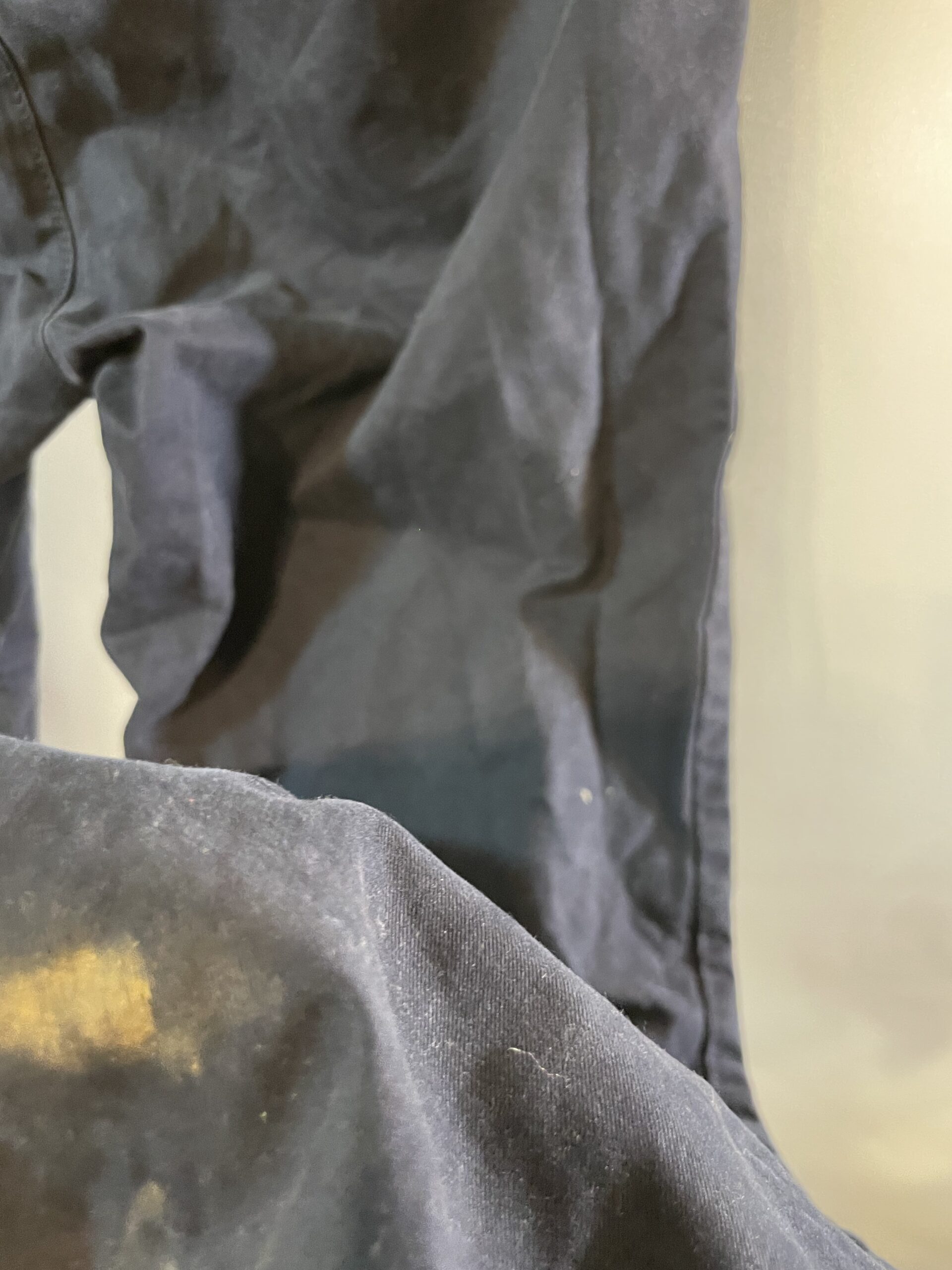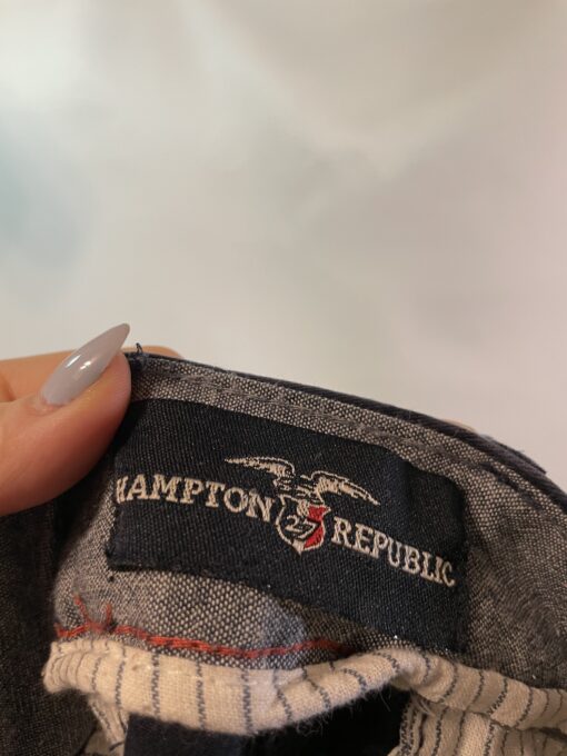 Šīs Banana Republic vīriešu chinos bikses ir izgatavotas no kvalitatīvas 100% kokvilnas, nodrošinot elpojošu un patīkamu valkāšanu ikdienā. Tumši zilā krāsa ir nedaudz izbalējusi, piešķirot viegli nēsātu raksturu. Klasisks taisns piegriezums, priekšpusē slēptais rāvējslēdzējs un viena aizmugures kabata ar atloku.Tomēr jāņem vērā vairāki defekti – neliels plīsums vīlē pie aizmugures kabatas un redzami izbalējumi uz kājām. Šie trūkumi nerada šķērsli praktiskai valkāšanai, bet tiek ņemti vērā piedāvātajā cenā. Komplektā iekļautas divas rezerves pogas. Labs risinājums darba apģērbam vai ikdienas lietošanai, kur prioritāte ir komforts, nevis perfekts izskats.