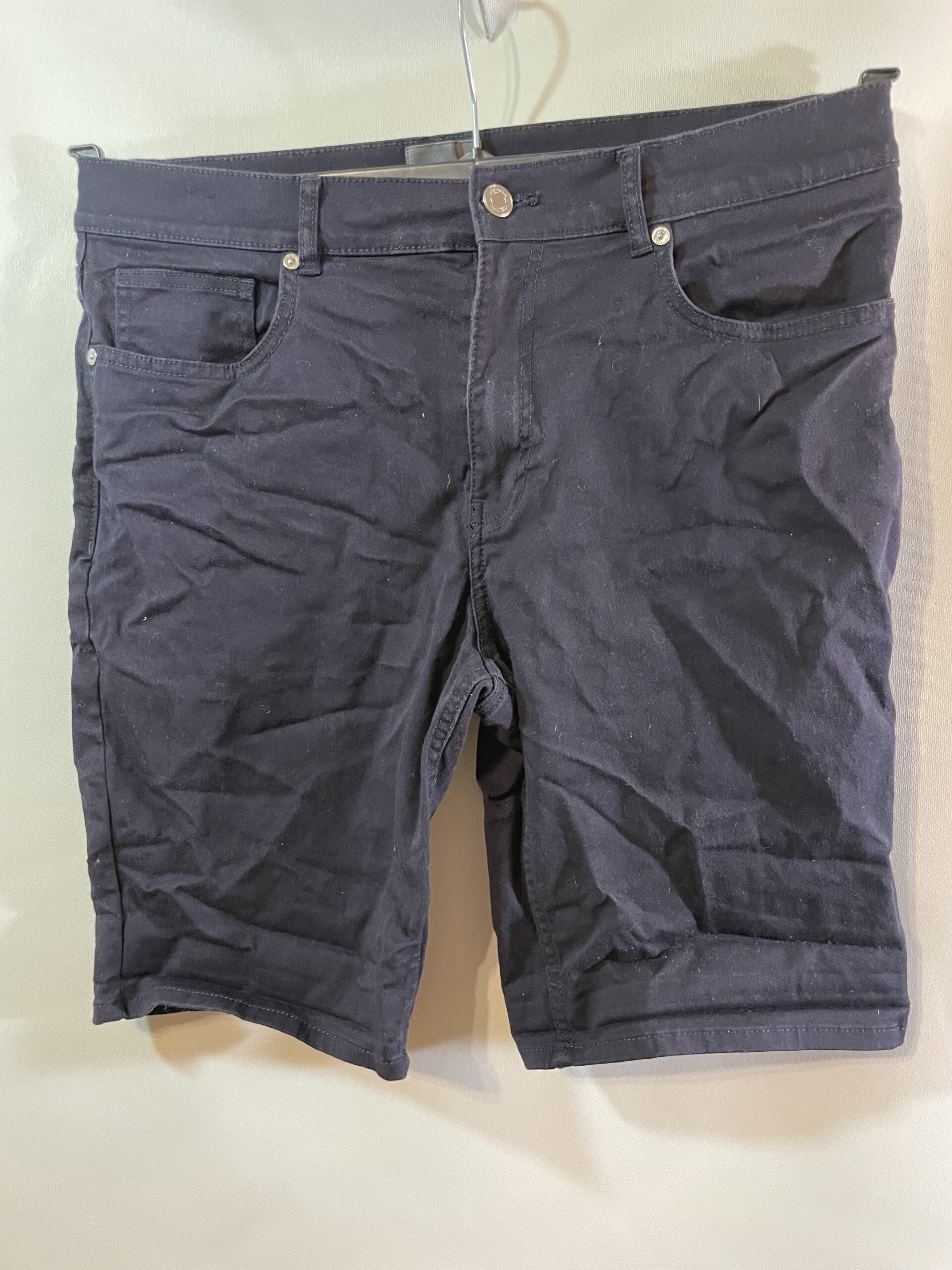 Šie tumši zilie vīriešu šorti ir praktiska izvēle siltajām dienām, pateicoties to klasiskajam piegriezumam un ērtajam materiālam. Piecu kabatu dizains nodrošina gan funkcionalitāti, gan vizuālu balansu. Materiāls ir patīkams pieskārienam, iespējams, ar elastāna piejaukumu, kas ļauj brīvāk kustēties. Ideāli ikdienai, pastaigām vai atpūtai brīvā dabā. Ir redzams viegls burzījums no glabāšanas, bet šorti joprojām ir pilnībā valkājami un saglabā savu formu.